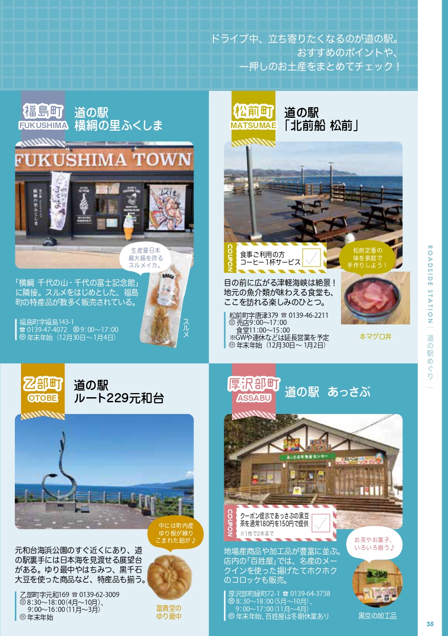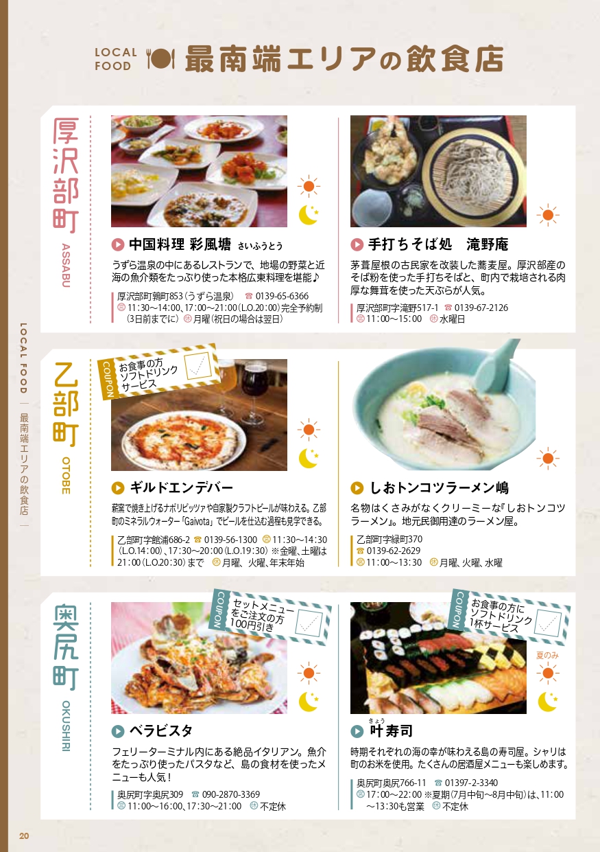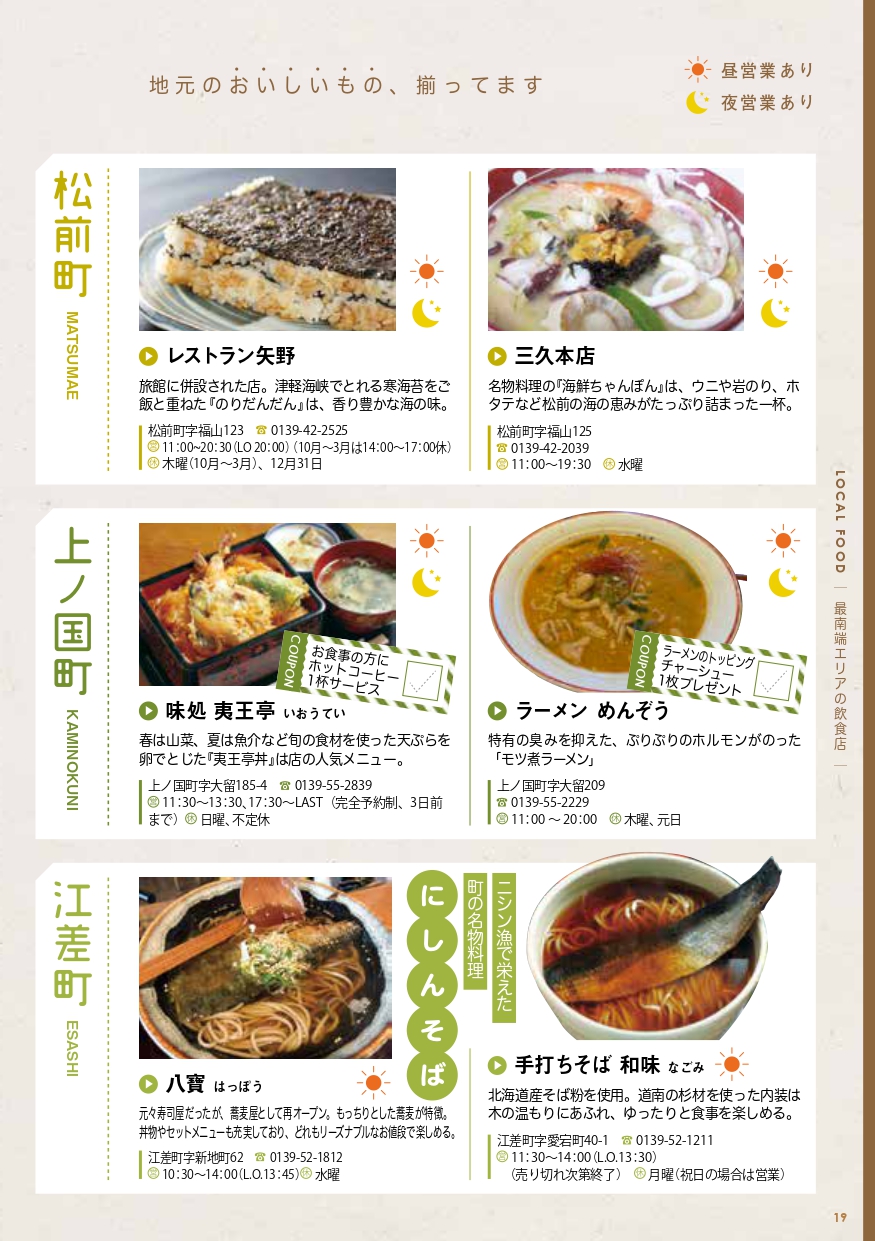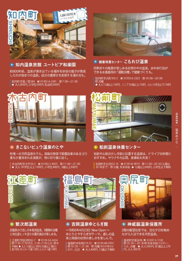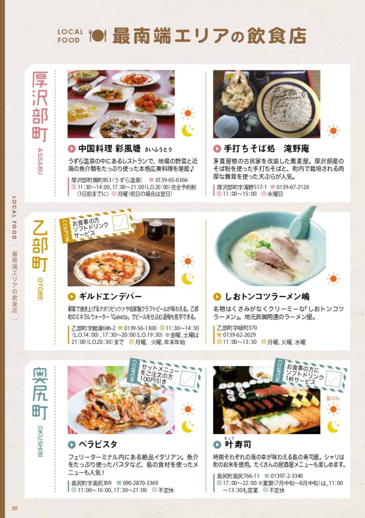 北海道南西部9町(木古内町、知内町、福島町、松前町、江差町、上ノ国町、厚沢部町、乙部町、奥尻町)の「見る」「食べる」「遊ぶ」を徹底的にガイドした旅行情報誌「北海道最南端紀行」(2026版)ができました! モデルルートや飲食店情報、体験なども紹介しており、これ一冊で道南旅プランを決めることができます! さらに、お得なクーポンも付きます! ぜひご覧になってみて、北海道最南端をめぐる旅へ!