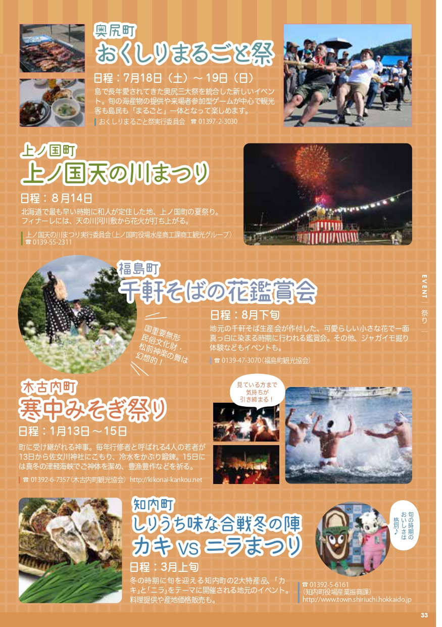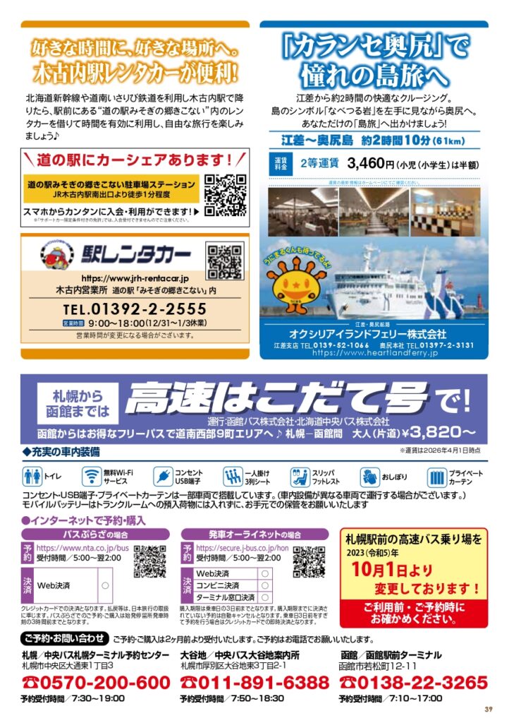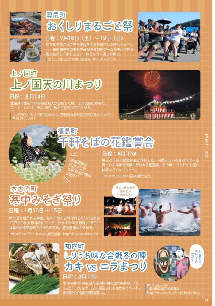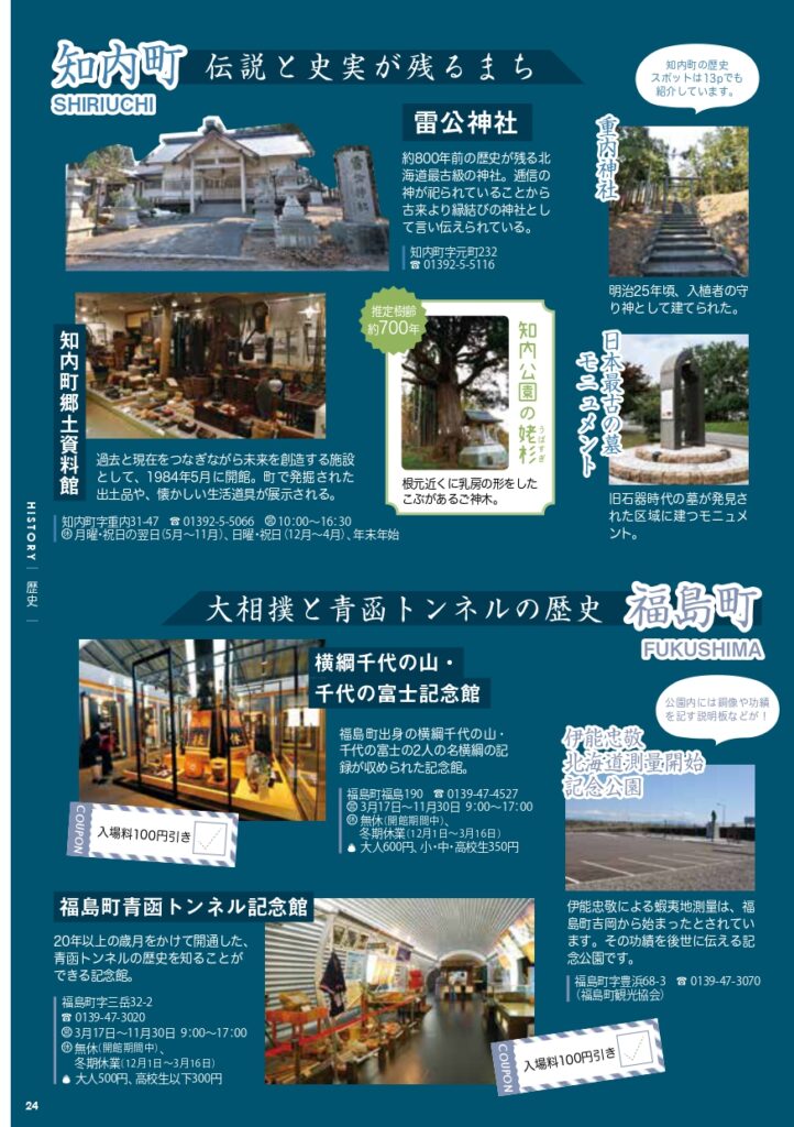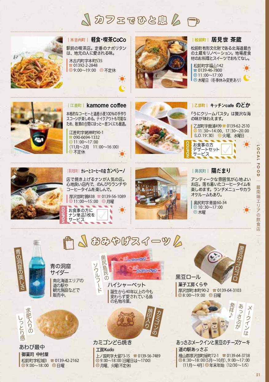 北海道南西部9町(木古内町、知内町、福島町、松前町、江差町、上ノ国町、厚沢部町、乙部町、奥尻町)の「見る」「食べる」「遊ぶ」を徹底的にガイドした旅行情報誌「北海道最南端紀行」(2026版)ができました! モデルルートや飲食店情報、体験なども紹介しており、これ一冊で道南旅プランを決めることができます! さらに、お得なクーポンも付きます! ぜひご覧になってみて、北海道最南端をめぐる旅へ!